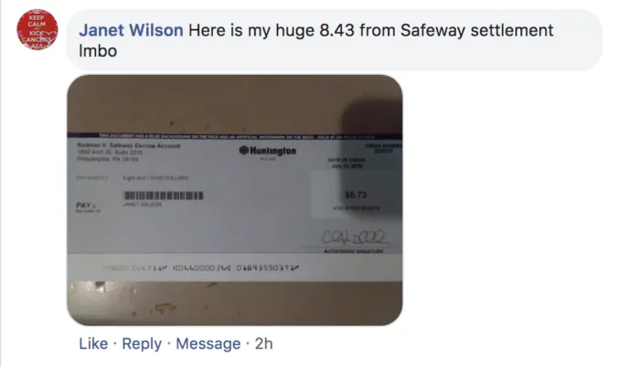 In 2017, Safeway agreed to pay $41.9 million as part of a class action settlement agreement, though the grocer did not admit any liability. However, the settlement agreement was disputed, delaying the claims process until 2019 when a federal court dismissed the appeal.