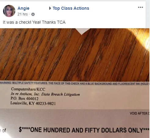 Top Class Actions viewers say that they have received checks for out-of-pocket losses suffered as a result of an Anthem data breach worth as much as $5,000.