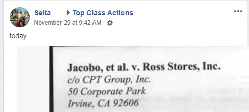 The Ross Class Action Lawsuit is Jacobo, et al. v. Ross Stores Inc., Case No. 2:15-cv-04701-MWF, in the U.S. District Court for the Central District of California.