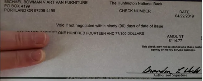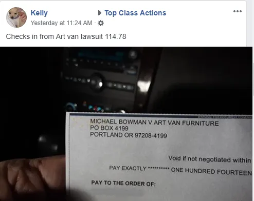 Top Class Actions viewers are also receiving checks worth as much as $114.77 from the Art Van Furniture marketing phone call class action settlement.