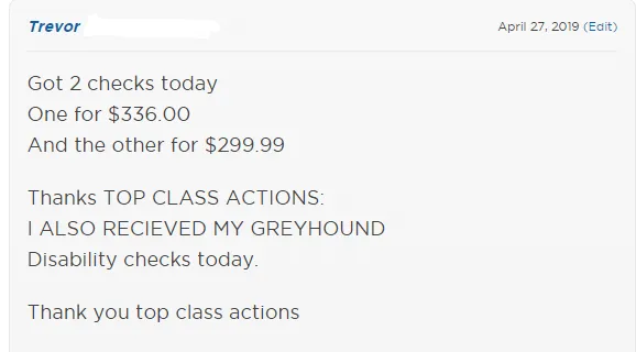 In addition, Top Class Actions viewers are receiving checks worth as much as $1,411.71 from the Greyhound Lines ADA class action settlement.
